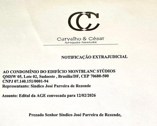 O síndico José Parreira divulgou Edital de Retificação da Convocação nesta sexta-feira, 6/2/2026, adiando a Assembleia Extraordinária para depois do Carnaval. A Assembleia será realizada em 25 de Fevereiro, quarta-feira. Última chamada, 19:00 horas. Parreira incluiu na Pauta um novo item: » Deliberação sobre a autorização de fornecimento dos dados pessoais e cadastrais dos condôminos …